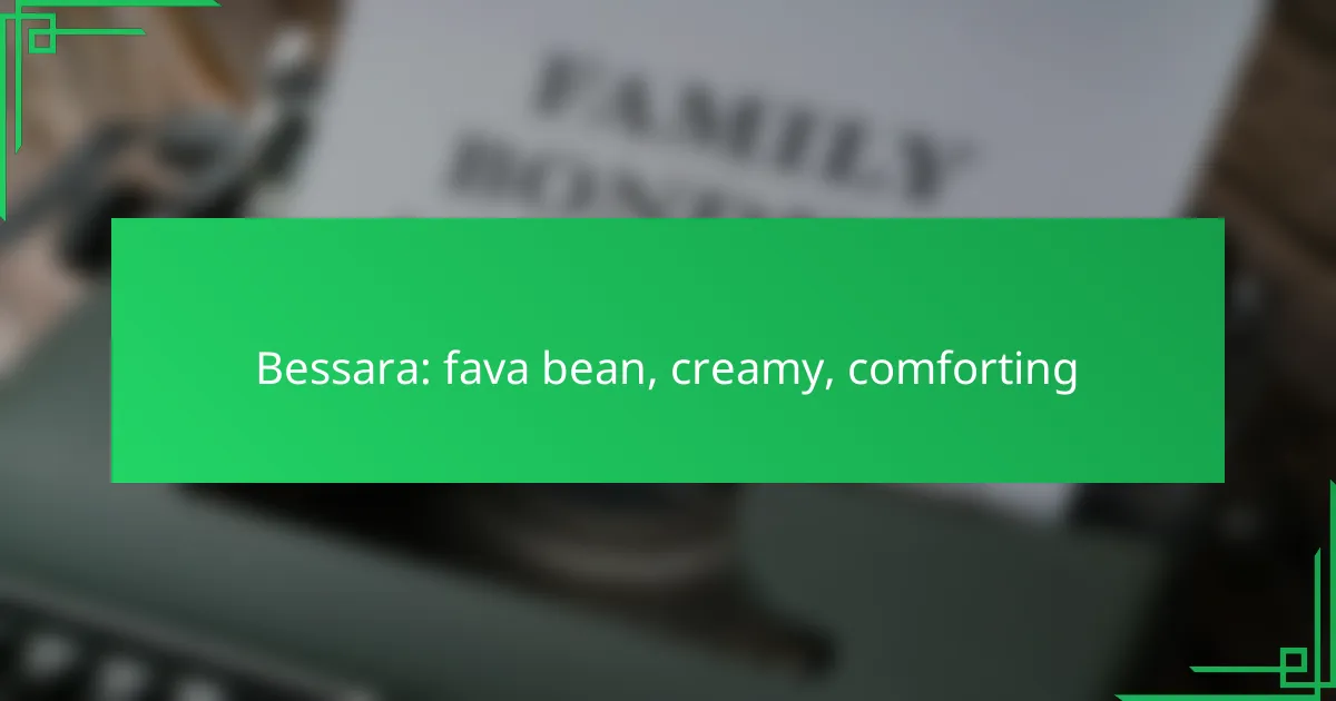 Bessara is a traditional dish made from fava beans, celebrated for its creamy texture and comforting flavor. Originating from North Africa, it holds cultural significance as a staple food that reflects the region’s agricultural practices and communal dining traditions.