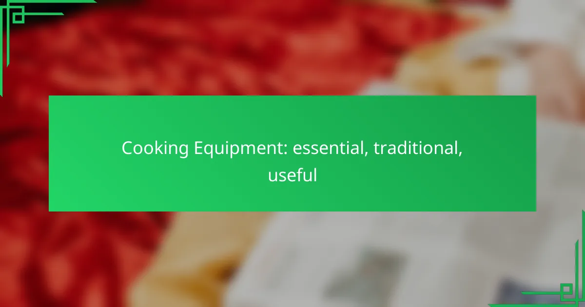 Cooking equipment plays a vital role in enhancing both the efficiency and quality of meal preparation. Essential tools like chef’s knives and cast iron skillets are foundational for any kitchen, while traditional equipment connects cooks to culinary heritage. Additionally, modern innovations simplify cooking tasks, making the kitchen experience more enjoyable and efficient.