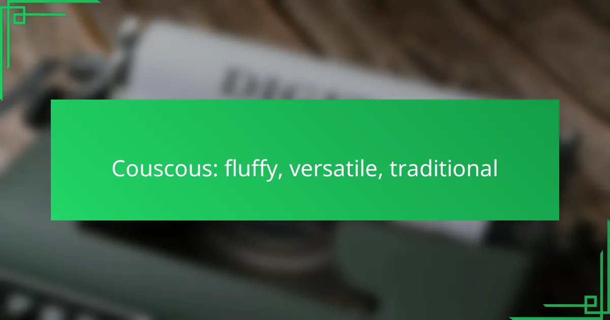 Couscous is a traditional North African dish known for its fluffy texture and versatility, making it a delightful base for a variety of meals. With the right preparation techniques, it can be transformed into a light and airy side or a hearty main dish, complemented by vegetables, proteins, and spices. Available in many grocery stores and specialty markets, couscous offers numerous options for both everyday cooking and special occasions.