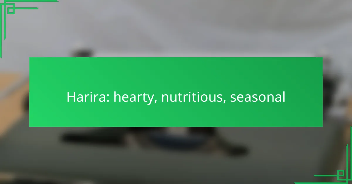 Harira is a traditional Moroccan soup known for its hearty and nutritious ingredients, making it a great source of energy and essential nutrients. It typically contains a blend of legumes, grains, and spices, contributing to its health benefits.