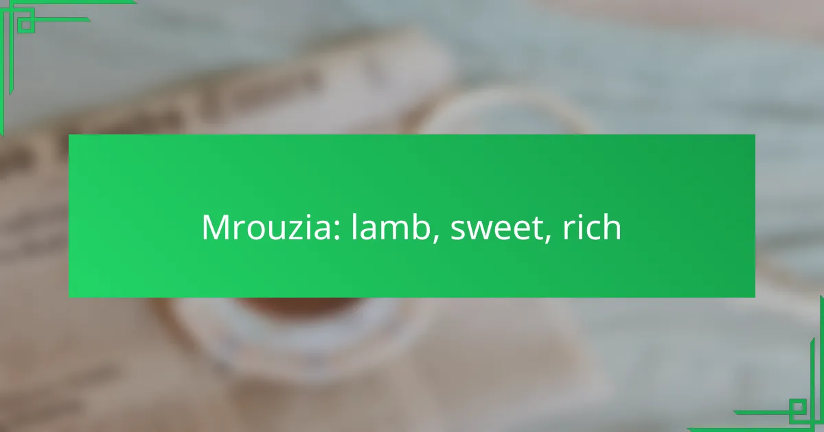 Another adaptation includes using a pressure cooker to reduce cooking time while still achieving tender meat. This method can be particularly useful for busy home cooks looking to enjoy Mrouzia without the long wait.